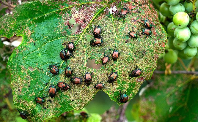 Two other natural choices are milky spore and nematodes. Some species of wasps eat them as do a few avian predators. Japanese beetle adults feed on a wide variety of plants.
