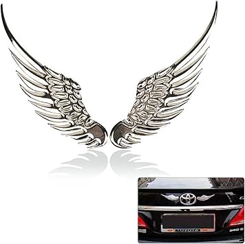 Amazon Com J C 3d Car Stickers 2 Pcs Metal Wings Car Emblem Stickers Badge Silver Wings Decoration Stickers Auto Decals For Car Toyota Bmw Audi Ford Automotive